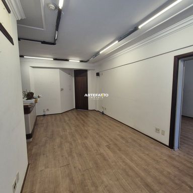 Sala ampla com espaço descoberto Copa 02 banheiros 01 vaga de garagem coberta Elevador Recepção